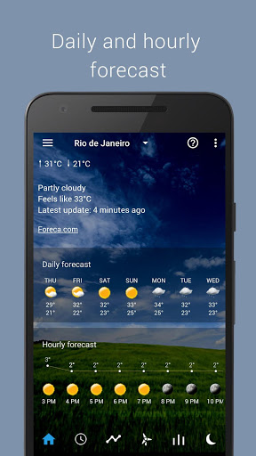 Phiên bản 1.01.01 - Sửa lỗi Phiên bản 1.01.00 - Bố cục dự báo thời tiết mới - Tùy chọn bật hoặc tắt thanh công cụ thời tiết phía dưới (menu phía trên bên phải) - Tùy chọn sử dụng không có âm thanh (Không có) để cảnh báo thời tiết - Đồ thị và hoạt ảnh trên trang điều kiện hiện tại - Tính toán gió lạnh - Trăng lên, trăng lặn và các tuần trăng chính trên trang điều kiện hiện tại - Hình ảnh radar hiện tại trên trang điều kiện hiện tại - Tối ưu hóa và cải tiến